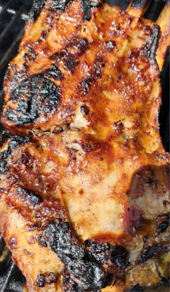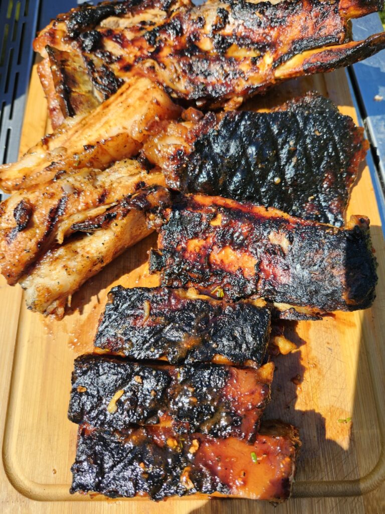- Déposez les travers entiers sur la grille pour les marquer et les caraméliser.